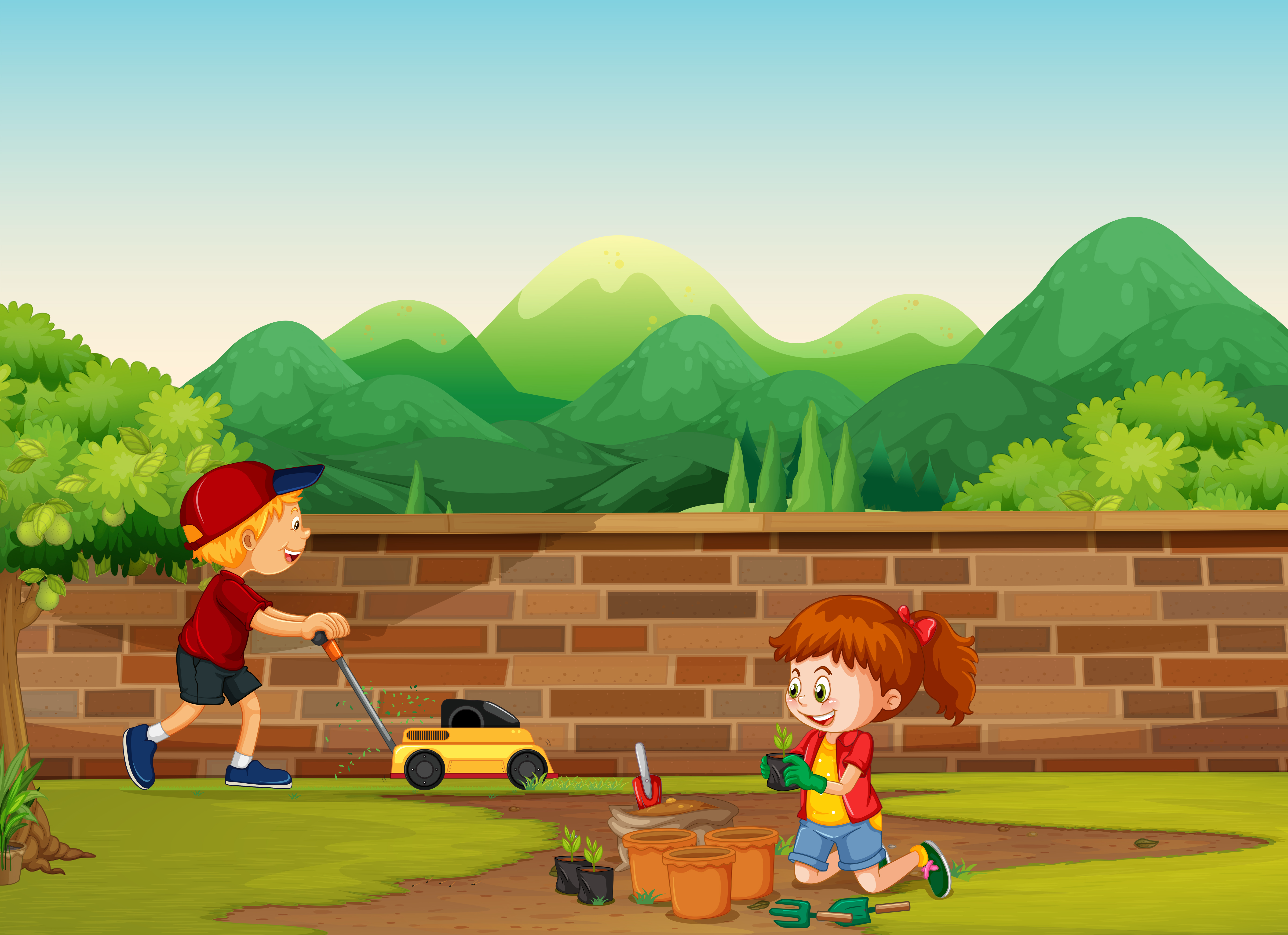 Boy and Girl Gardening at Yard 419742 Vector Art at Vecteezy